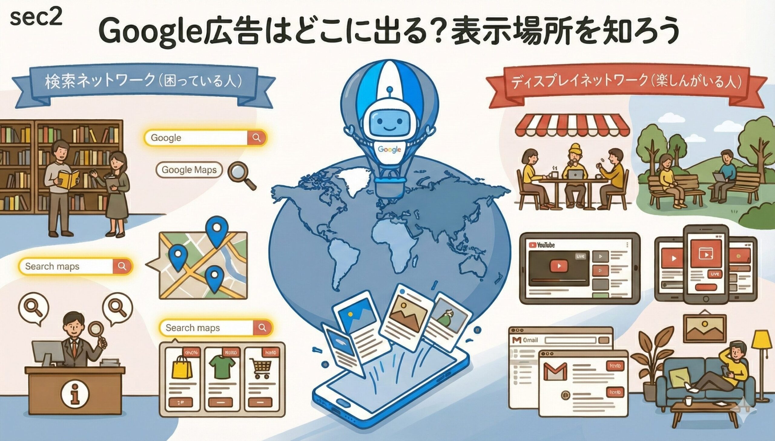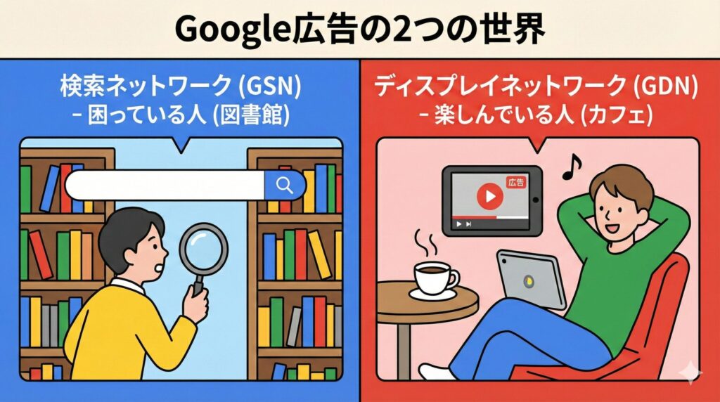 まず最初に、一番大切なことをお伝えします。 Google広告が表示される場所は、大きく分けて「2つの世界」しかありません。