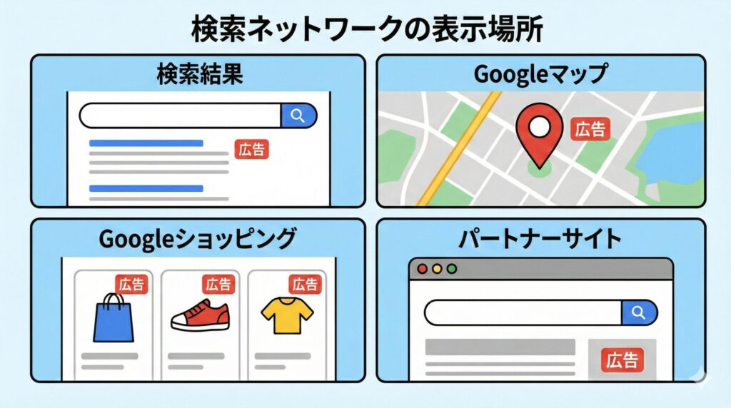 初心者の場合、まずは「検索ネットワーク」から始めるのが失敗の少ない王道です。なぜなら、向こうから「探してくれている」状態なので、売り込みが成功しやすいからです。